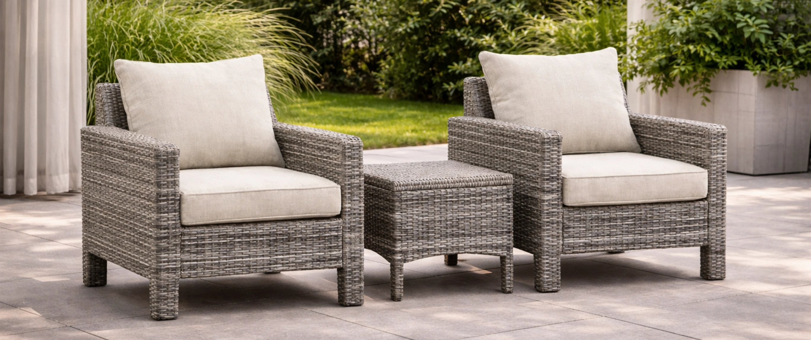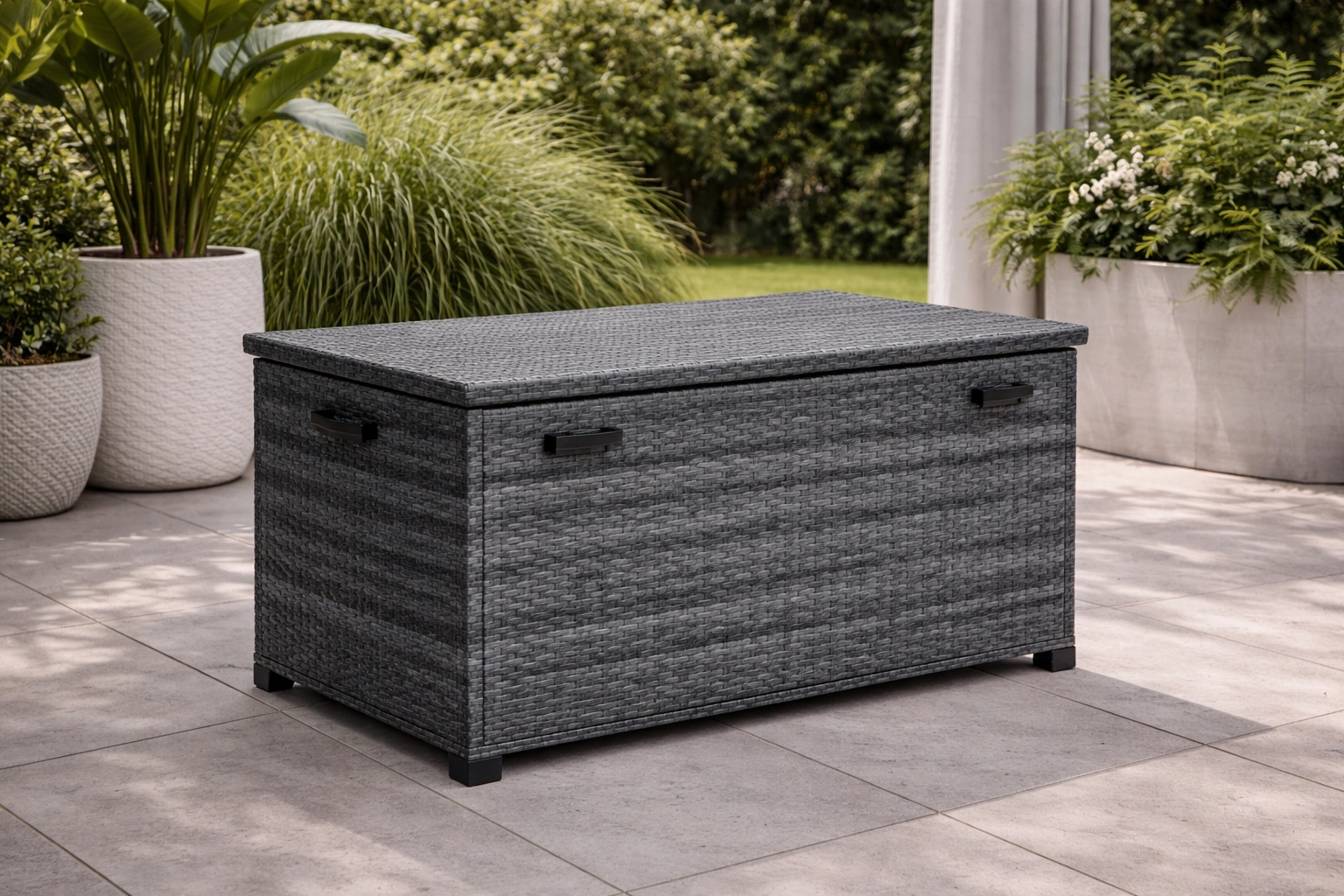 Coffre de rangement en résine tressée gris 116 x 47 x 57 cm