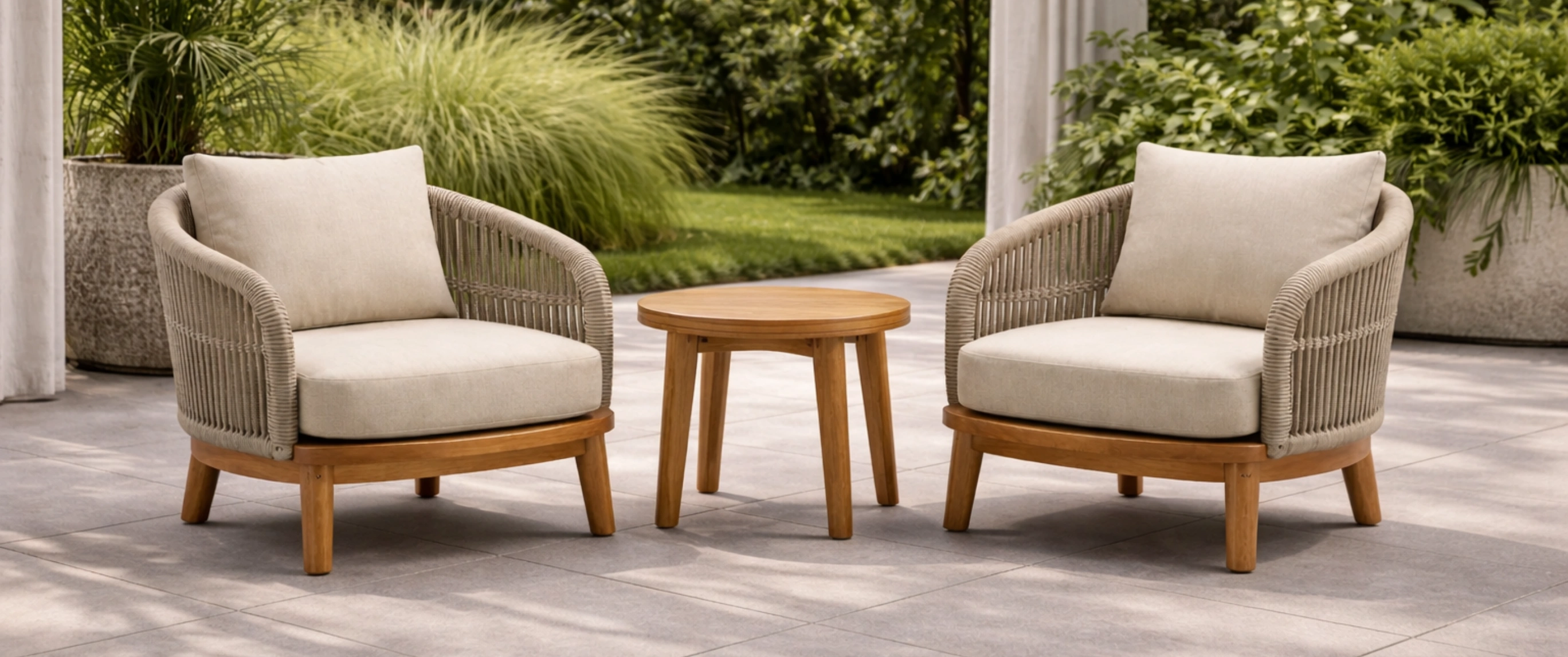 Ensemble de table et chaises de jardin en aluminium avec plateau en verre et chaises en corde