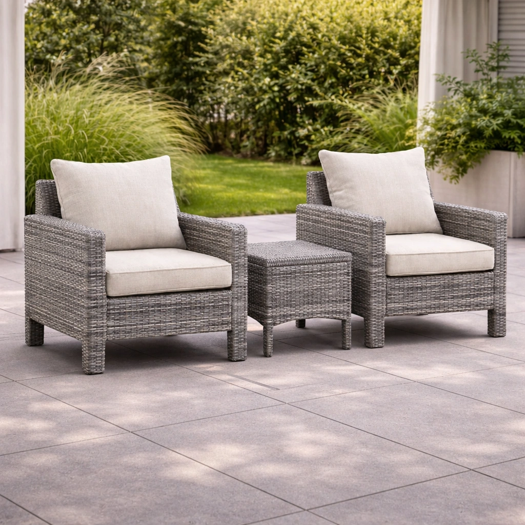 Ensemble de table et chaises d'extérieur en résine tressée bleu et noir