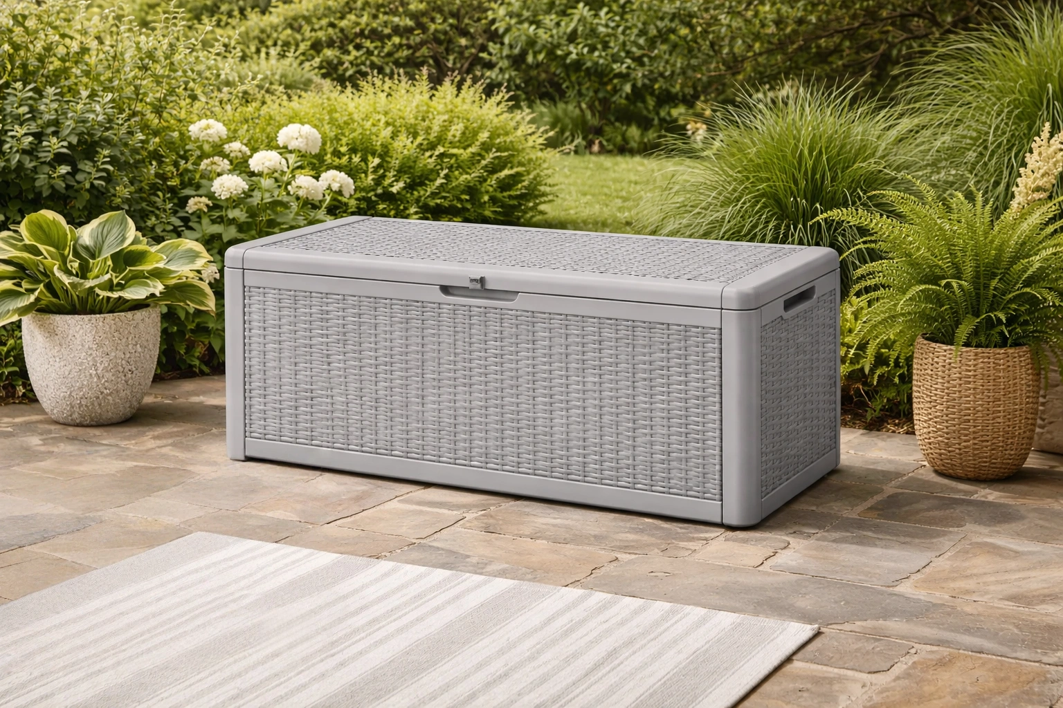 Coffre de rangement en résine tressée gris