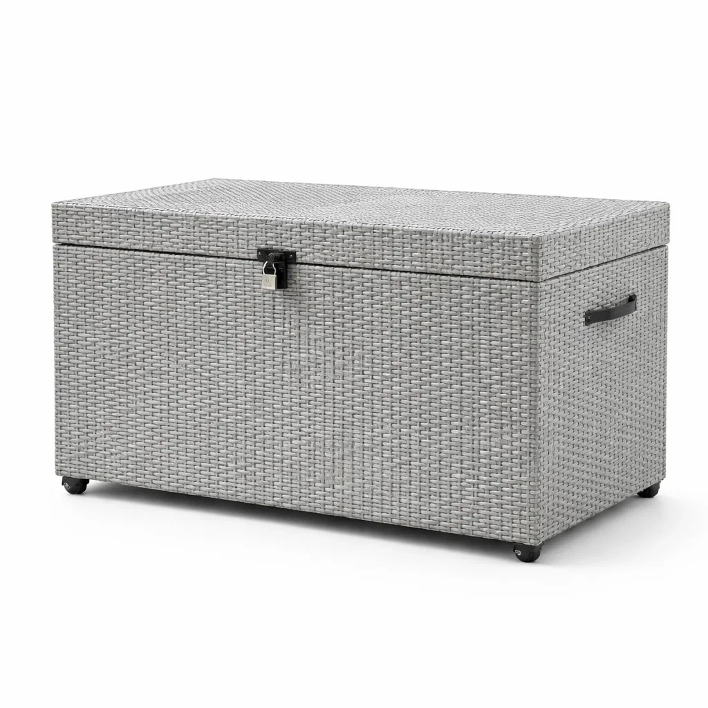 Conçu pour le stockage extérieur, il offre un espace de rangement supplémentaire sécurisé grâce à un cadenas intégré. Équipé de roues pour faciliter le déplacement. Aucun assemblage requis. Entretien facile avec de l'eau savonneuse.